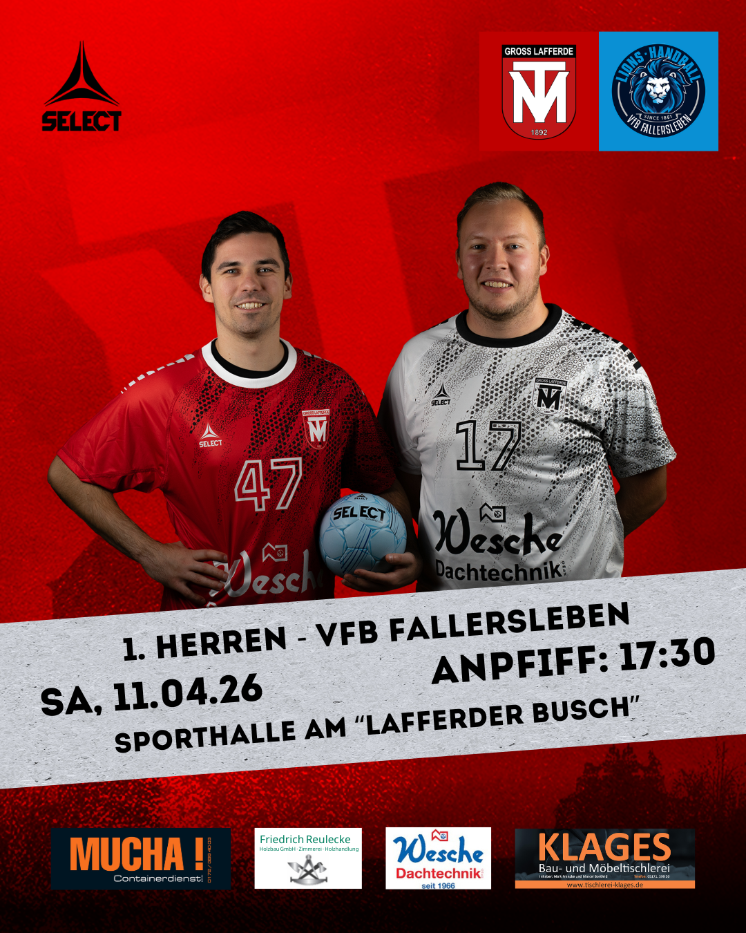 Vorbericht MTV Groß Lafferde – VfB Fallersleben Samstag, 11.04.2026, 17:30 Uhr – Sporthalle am Lafferder BuschAm kommenden Samstag steht für den…