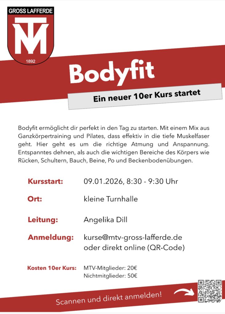 Bodyfit ermöglicht dir perfekt mit einem Mix aus Ganzkörpertraining und Pilates, dass effektiv in die tiefe Muskelfaser geht sanft in den Tag zu starten. Hier geht es um die richtige Atmung und Anspannung. Entspanntes dehnen, als auch die wichtigen Bereiche des Körpers wie Rücken, Schultern, Bauch, Beine, Po und Beckenbodenübungen.